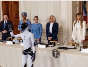 En su discurso de apertura, Melania Trump afirmó que “la próxima generación, estará marcada por el uso de la inteligencia artificial (IA) en el aprendizaje y por el surgimiento de educadores humanoides para estudiar en casa.