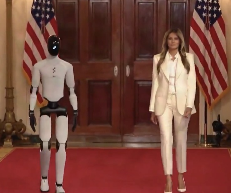 Durante el segundo día de la cumbre Fostering the Future Together, Melanie Trump se presentó acompañada de un robot desarrollado en Estados Unidos, previo a su mensaje ante representantes de 45 naciones y 28 organizaciones tecnológicas.