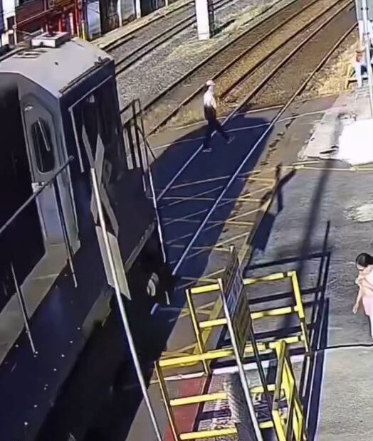 En la grabación de 22 segundos de duración, compartida en redes sociales, se observa cómo la joven va caminando tranquilamente y apresura el paso para cruzar las vías del tren, sin voltear a ver del lado donde se aproximaba el ferrocarril.