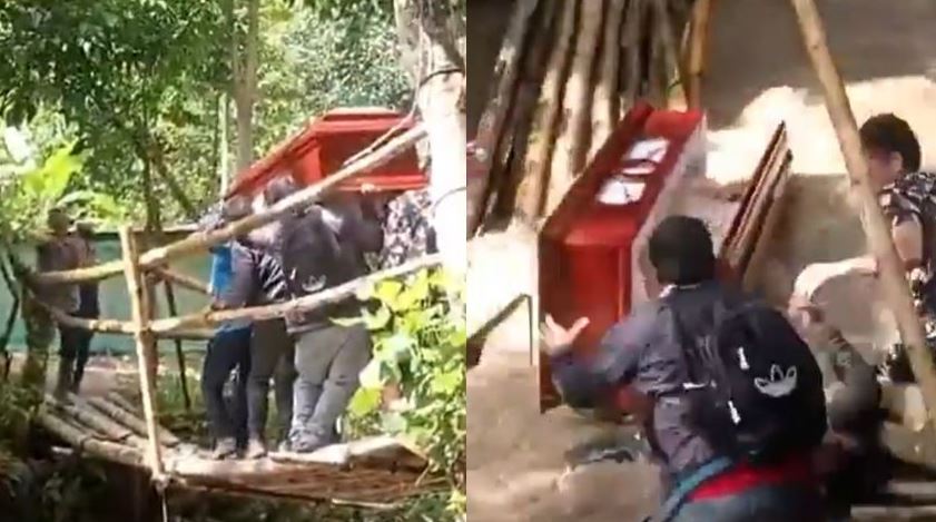 Un ataúd que cargaba un grupo de personas cayó al río luego de que de manera inesperada el puente de troncos por el que caminaban colapsara. La caravana de pobladores se dirigía al sepelio, cuando se registró el percance en el caserío Lanchema, del distrito de Pomahuaca en la provincia de Jaén, en Perú.