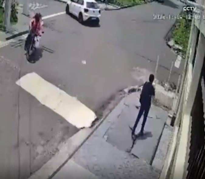 En las imágenes se aprecia como un joven caminaba normal sobre una calle cuando en cuestión de segundos un enorme cráter se terminó abriendo y el estudiante cayó.