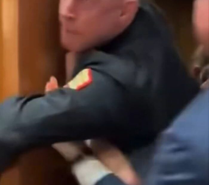 La policía del Capitolio intentó retirarlo de la sala, pero el ex militar se resistió agarrándose al marco de una puerta. En medio del forcejeo —en el que incluso intervino el senador republicano Tim Sheehy— su brazo quedó atrapado y terminó lesionado mientras lo sacaban del recinto.