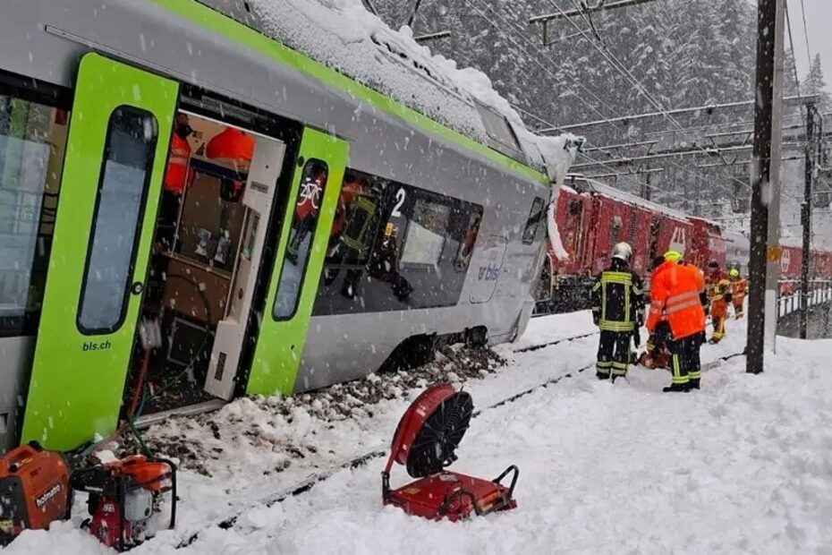 Un tren RegioExpress de la compañía BLS AG descarriló este lunes en el cantón suizo de Valais debido a una avalancha de nieve que bloqueó las vías poco después de salir de un túnel. El incidente ocurrió alrededor de las 7:00 a.m., cuando el tren, que transportaba a 29 pasajeros entre Goppenstein y Hohtenn, circulaba en medio de intensas nevadas.