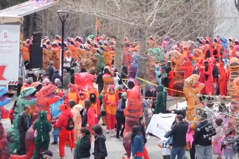 Con motivo a su celebración número 60 de aniversario, una universidad en Canadá se dispuso a romper un récord mundial único: La mayor concentración de personas disfrazadas de dinosaurios.