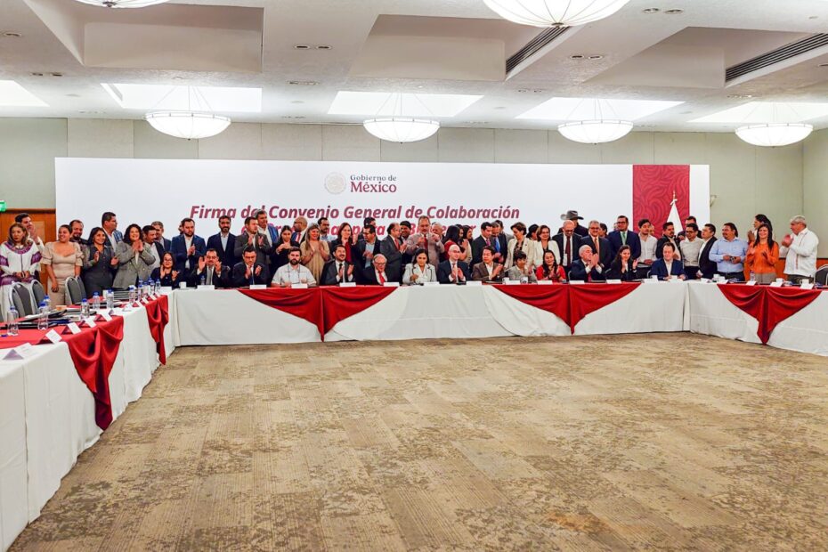 En el marco de la firma del convenio, que signaron el gobierno de México, las Secretarías de Bienestar; Agricultura y Desarrollo Rural; Educación Pública; del Trabajo y Previsión Social; Desarrollo Agrario, Territorial y Urbano; las instituciones: Banco del Bienestar, Comisión Nacional de Vivienda (Conavi), Financiera para el Bienestar (Finabien), Instituto Nacional de los Pueblos Indígenas (INPI), Comisión Nacional de Acuacultura y Pesca (Conapesca),