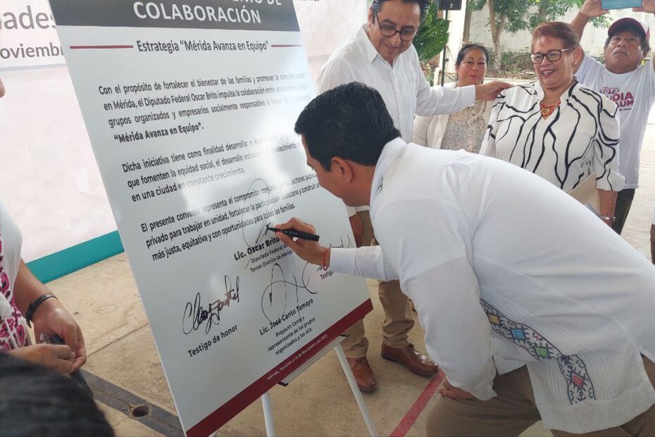 Para fortalecer el bienestar de las familias y promover la cohesión social, este viernes se firmó el convenio de colaboración que pone en marcha la estrategia “Mérida Avanza en Equipo”, impulsada por el diputado federal Óscar Brito Zapata. Más de 10 agrupaciones civiles y empresarios se sumaron a este proyecto comunitario.