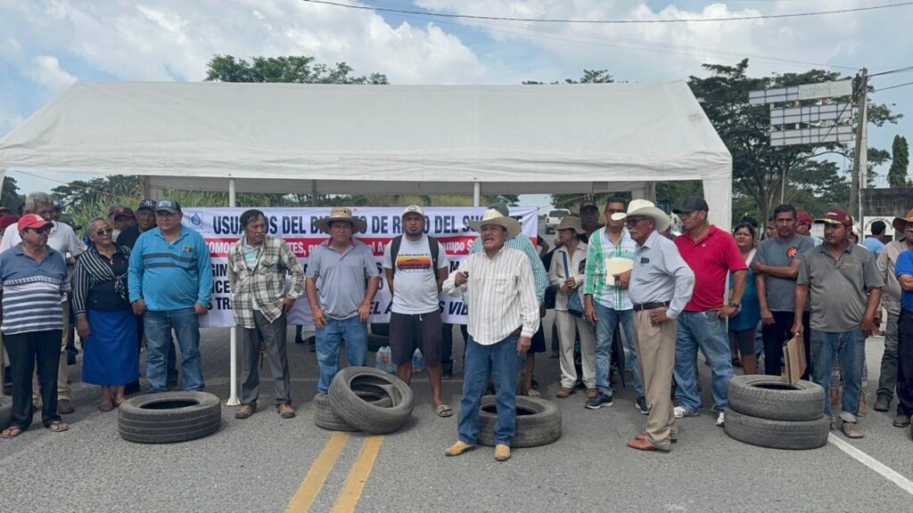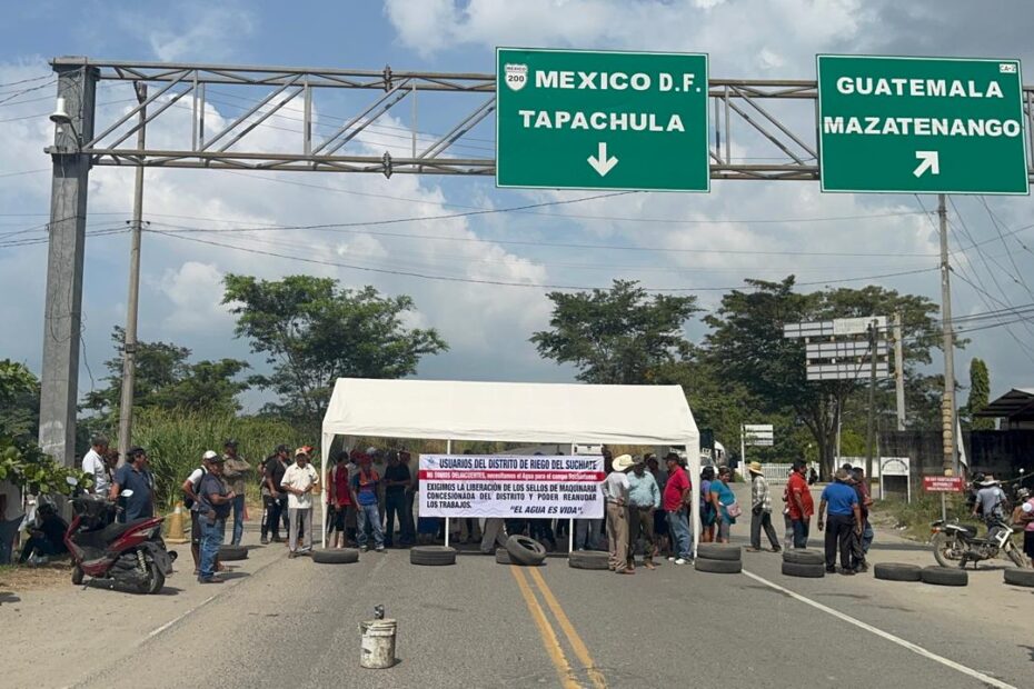 Ante la falta de respuesta por parte de las autoridades federales, luego de que la Procuraduría Federal de Protección al Ambiente clausuró el sistema de derivación de agua y maquinaria del distrito de riego 046 en el río Suchiate, los ejidatarios establecieron un plantón indefinido en el Puerto Fronterizo Suchiate II.