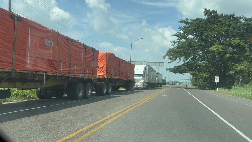 Mientras tanto, la fila de tráileres sobre la carretera Tapachula-Ciudad Hidalgo es kilométrica, cerca de 300 camiones pesados están detenidos, alrededor de 6 mil toneladas de mercancía.