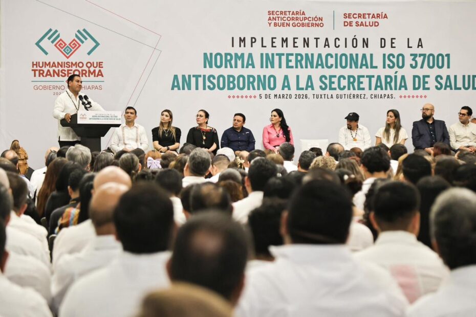 “Someternos a la normatividad internacional ISO 37001 es muy importante para nuestro gobierno. Iniciamos con la Secretaría de Salud, pero avanzaremos a otras dependencias como la Secretaría de Infraestructura, porque es una instancia donde se manejan recursos y se llevan a cabo adquisiciones y licitaciones. Estoy convencido de que en esta época nos toca hacer lo que nos corresponde para cambiar las cosas en Chiapas y México”, expresó.