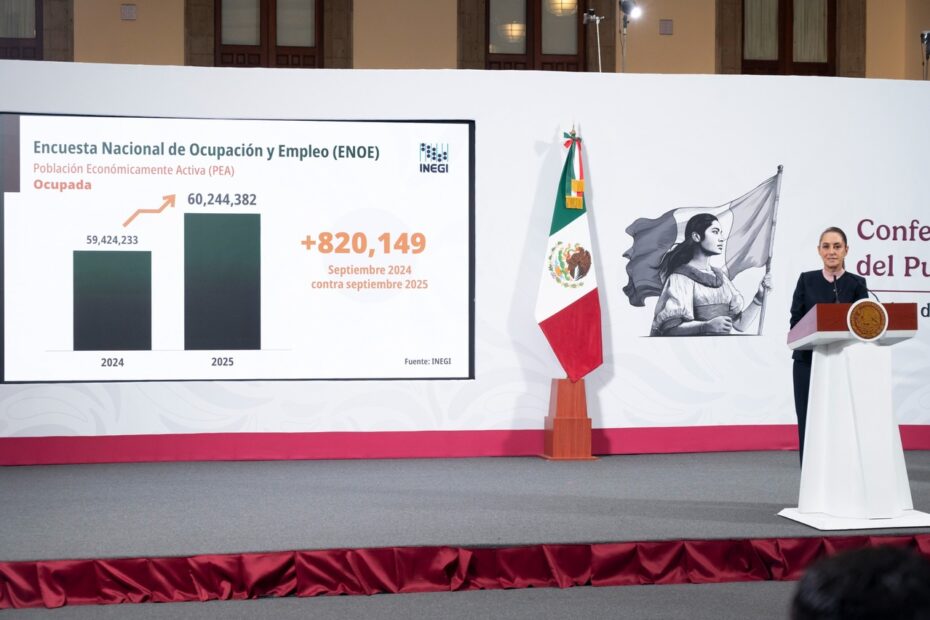 Septiembre de este año tuvo el registro más alto en la historia del empleo, así lo destacó la presidenta Claudia Sheinbaum durante su mañanera de este miércoles.