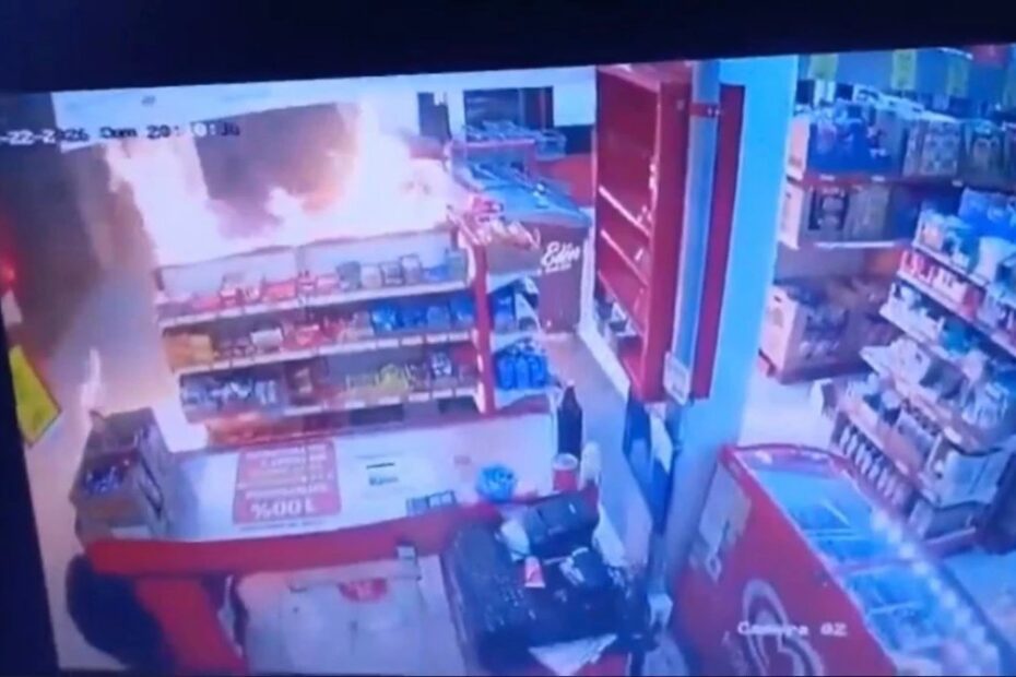 De acuerdo con reportes preliminares, al menos dos hombres con el rostro cubierto con cubrebocas y capuchas ingresaron al local y arrojaron un artefacto explosivo hacia uno de los anaqueles, muy cerca del área de cajas. Cámaras de videovigilancia captaron el momento exacto en que el objeto estalló y el fuego se propagó rápidamente dentro del negocio, pese a la presencia de clientes y trabajadores.