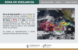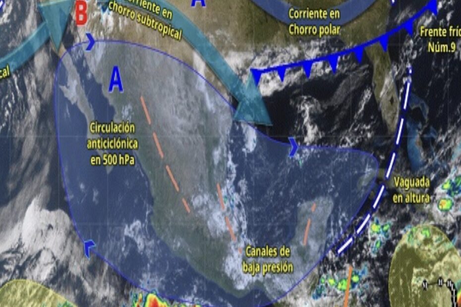 Otro canal de baja presión sobre el interior del territorio nacional, en combinación con el ingreso de humedad del océano Pacífico y golfo de México, ocasionarán lluvias y chubascos en estados del norte, occidente, centro y sur de México.