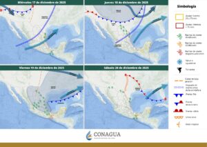 Finalmente, se pronostica la aproximación de un nuevo frente frío durante la noche hacia la frontera norte de México.