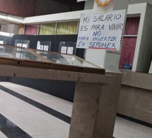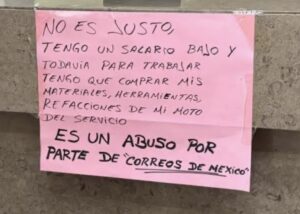 “ No es justo! Tengo un salario bajo y todavía para trabajar tengo que comprar mis materiales, herramientas, refacciones de mi moto del servicio”, se leía en sus cárteles.
