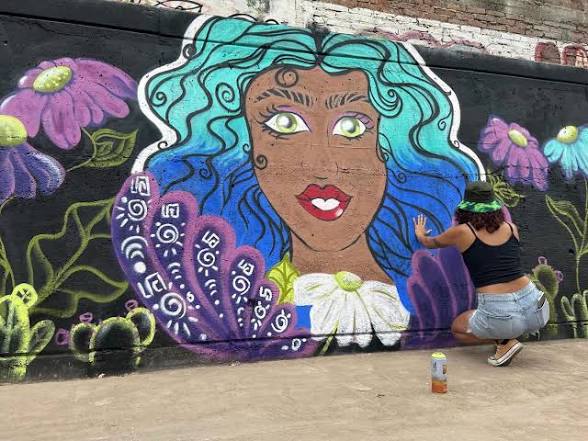 La joven ya cuenta con trayectoria en su municipio y zonas cercanas, donde ha realizado intervenciones en comercios y espacios urbanos, consolidando su presencia en la escena local.