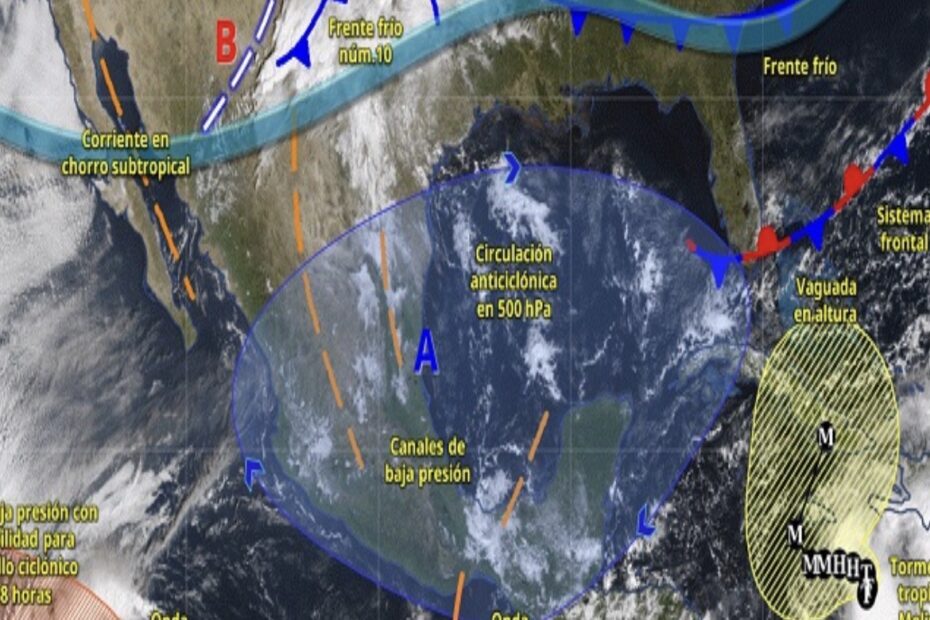 Finalmente, un anticiclón en niveles medios de la atmósfera mantendrá baja probabilidad de lluvia en la Mesa del Norte y la Mesa Central.