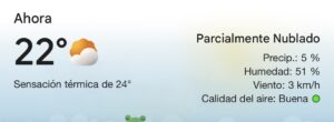 En este momento se registra sensación térmica de 22 grados centígrados.
