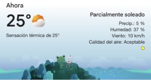 En este momento se registra sensación térmica de 25 grados centígrados.