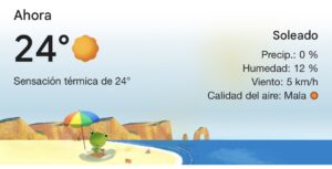En este momento se registra sensación térmica de 24 grados centígrados.
