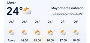 En este momento se registra sensación térmica de 24 grados centígrados.