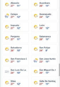 Para el resto de municipios la máxima será de 27 grados y  mínima de 10 grados .