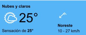 En este momento se registra sensación térmica de 25 grados centígrados.