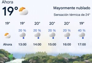 En este momento se registra sensación térmica de 19 grados centígrados.