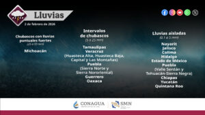 Un canal de baja presión prevalecerá sobre el occidente del golfo de México, originando lluvias y chubascos en estados del noreste, oriente y sureste del territorio mexicano.