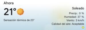 En este momento se registra sensación térmica de 21 grados centígrados.