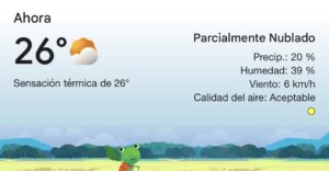 En este momento se registra sensación térmica de 26 grados centígrados.