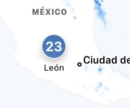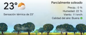 En este momento se registra sensación térmica de 23 grados centígrados.