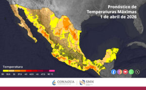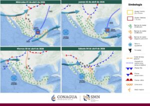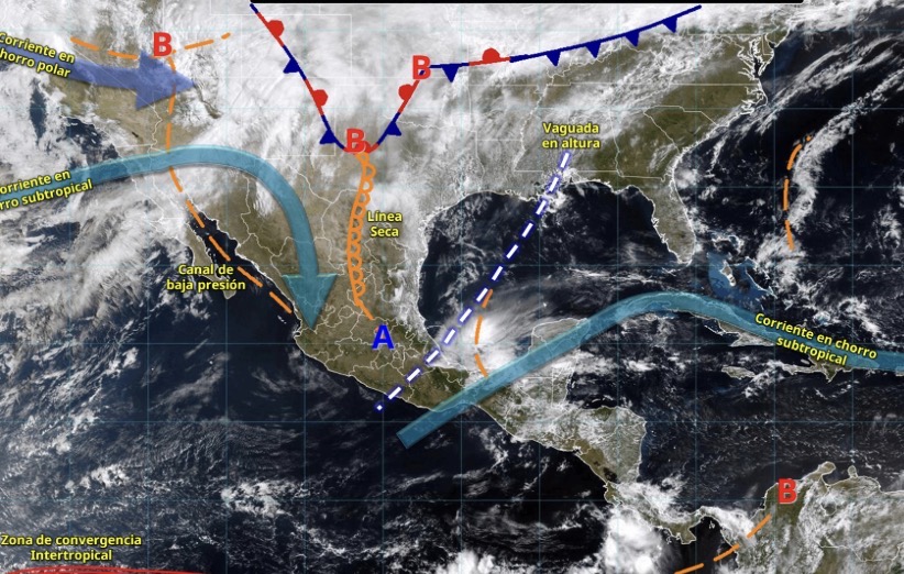 Por otra parte, una línea seca sobre el norte del territorio nacional ocasionará rachas de viento de hasta 80 km/h en la mencionada región, además de condiciones para formación de torbellinos en zonas de Coahuila y Nuevo León.