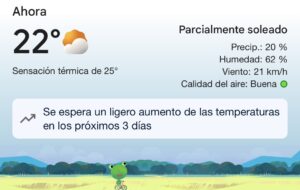 Por la tarde, tendremos lluvia débil con cielo parcialmente nuboso y con temperaturas en torno a los 23°C.