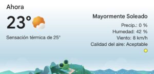 Durante la noche, las temperaturas estarán cercanas a los 18°C. Vientos del Noreste a lo largo del día, con una velocidad media de 17 km/h.