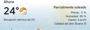 En este momento se registra sensación térmica de 25 centígrados.