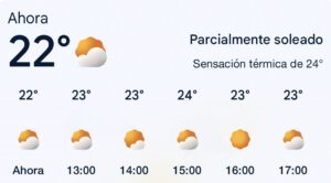 En este momento se registra sensación térmica de 22 grados centígrados.