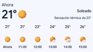 En este momento se registra sensación térmica de 21 grados centígrados.