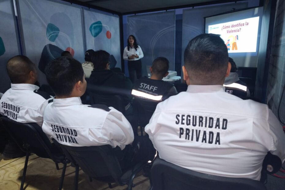 Elementos de seguridad privada recibieron instrucción sobre prevención e identificación de distintos tipos de violencia, con el propósito de generar entornos seguros para expositoras, trabajadoras y visitantes. La actividad estuvo a cargo de la supervisora de la Unidad de Violencia Laboral, Sofía Rodríguez, quien destacó la importancia de reconocer y atender cualquier situación de riesgo dentro del recinto ferial.