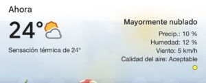 En este momento se registra sensación térmica de 24 grados centígrados.