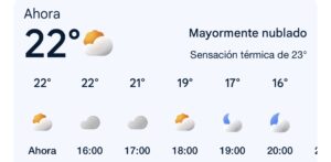 En este momento se registra sensación térmica de 22 grados centígrados.