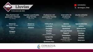 Evento de “Norte” de 20 a 30 km/h con rachas de 40 a 60 km/h: Tamaulipas, Campeche, Yucatán y Quintana Roo.