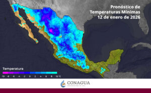 La masa de aire polar asociada al frente mantendrá el ambiente frío a muy frío durante la mañana y noche sobre el centro, oriente y sureste del país, así como evento de “Norte” fuerte a intenso en el litoral del golfo de México, istmo y golfo de Tehuantepec, condición que disminuirá durante la noche.