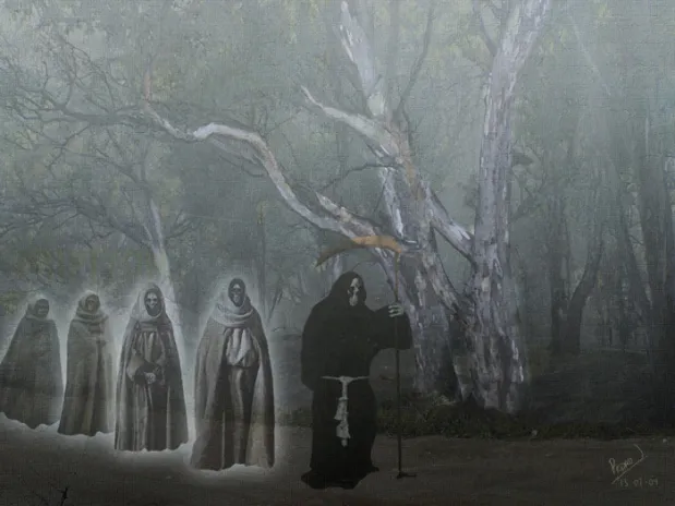 Extrañado el señor Cura tomó en sus manos uno de aquellos huesos y al comprobar que eran humanos, se horrorizó y tirándolo a un lado hizo la señal de la cruz y se santiguo.