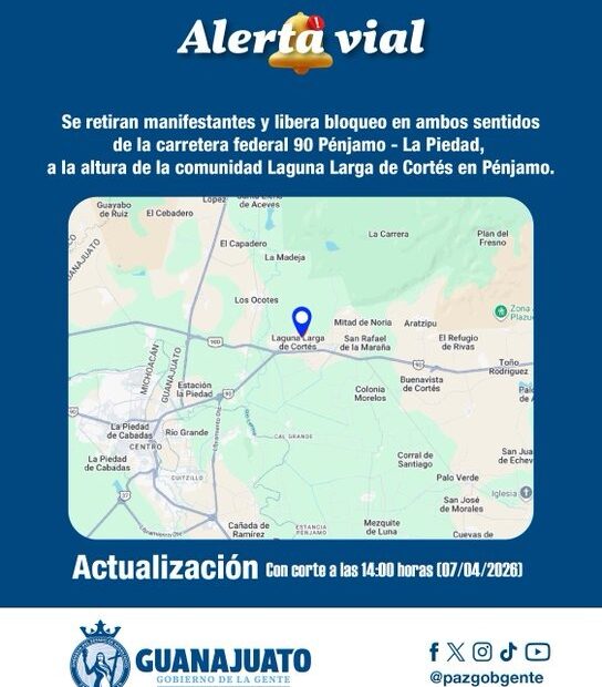 Cabe destacar que a partir de este megabloqueo registrado a nivel nacional, en Guanajuato solo se registraron afectaciones en la carretera antes mencionada, el reto de las vialidades del estado presentan libre circulación.
