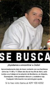 De acuerdo con los hechos, familiares y compañeros, reportaron a Julio César Alvarado Morales entre las 11:00 y 11:30 am del pasado 6 de abril, luego de salir de su domicilio con rumbo a su jornada laboral sin que supieran más de su paradero.