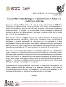 Este miércoles 1 de octubre, de nueva cuenta hay huelga en Nacional Monte de Piedad debido a incumplimientos del convenio firmado en 2024.