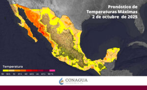 Temperaturas máximas de 35 a 40 °C: Baja California (noreste), Baja California Sur, Sonora, Chihuahua (suroeste), Coahuila (noreste), Durango (noroeste), Nayarit, Michoacán, Oaxaca (sureste) y Campeche.