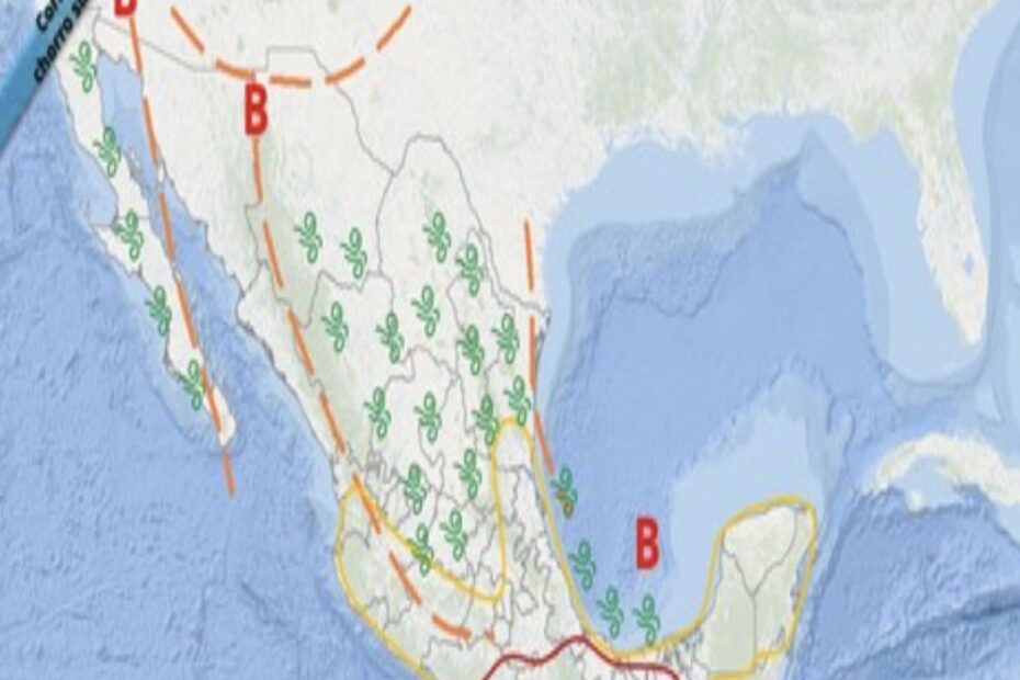Viento de 10 a 25 km/h con rachas de 30 a 50 km/h: Baja California, Baja California Sur, Sonora (costa sur), Sinaloa (costa norte), Chihuahua, Nuevo León, Durango, Zacatecas, Aguascalientes, San Luis Potosí, Jalisco, Colima, Michoacán, Guanajuato, Querétaro, Hidalgo, Puebla, Tlaxcala, Estado de México, Ciudad de México, Guerrero (noroeste), Chiapas, Tamaulipas, Tabasco (costa oeste), Yucatán y Quintana Roo.
