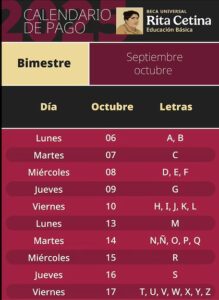 Este es el calendario oficial de pagos de laBeca Rita Cetina correspondiente a los meses de septiembre-octubre de 2025.