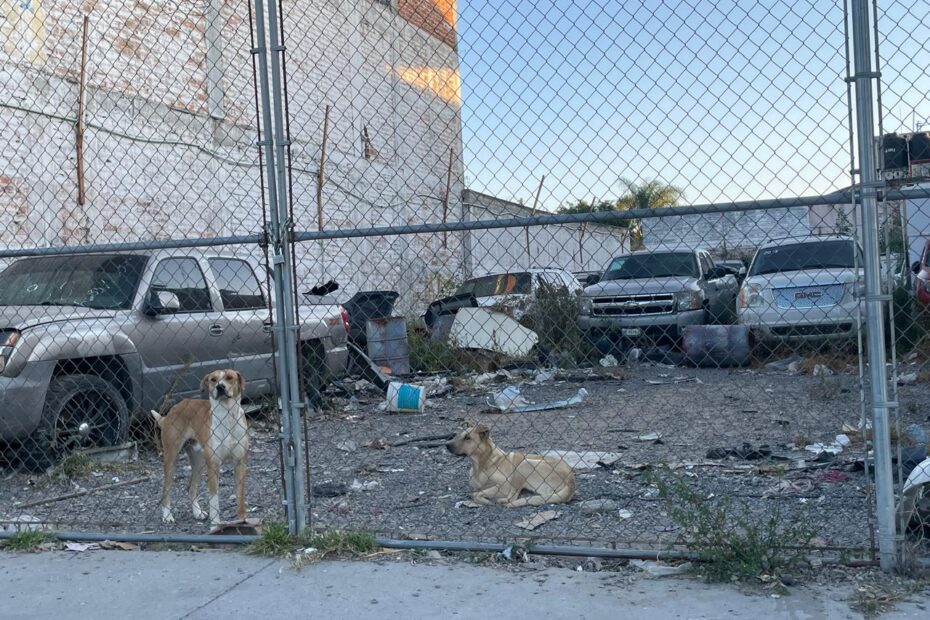 Ciudadanos y conductores de León, realizaron el reporte de dos perros en descuido o en condiciones de abandono, que se encuentran encerrados en un predio baldío ubicado en la colonia Azteca, hasta donde llegan algunas personas para darles alimento.